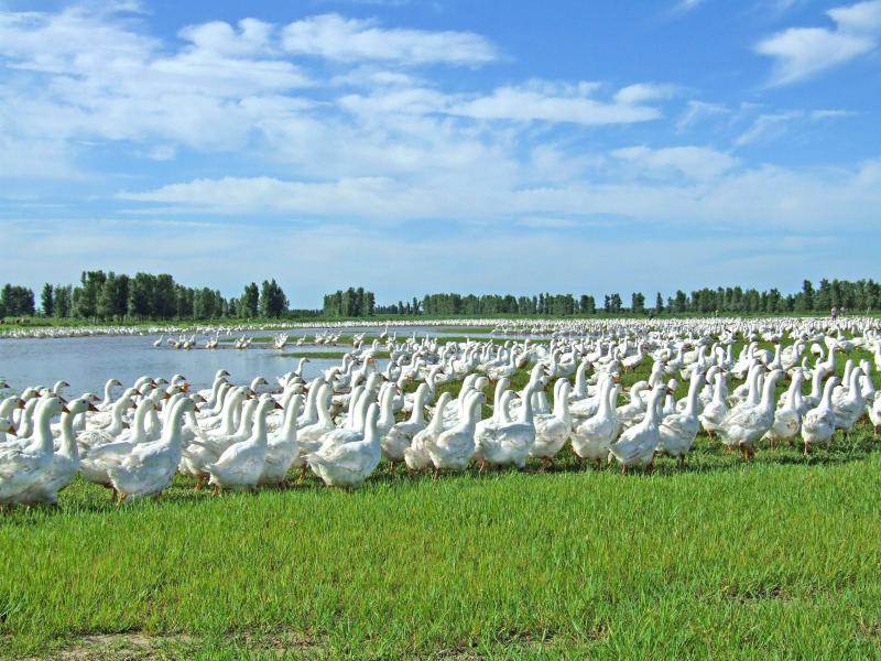 匈牙利的地理位置和地形非常有利于养鹅。匈牙利大部分的国土都是可供放牧的绿色平原。而且草地中遍布的河流与湖泊也非常有利于鹅的散养。匈牙利是典型的大陆性气候,四季分明。 24小时内温差可达到10-15摄氏度。这种环境下,鹅为了抵御寒冷,身上的羽绒就会发育得很好。匈牙利的农场主们将积累多年的养鹅知识、重要经验与现代社会的科研结果结合在一起。匈牙利有着世界闻名的鹅业养殖和防疫研究中心——圣伊斯特万大学农科院。在农科院的科研人员的帮助下,匈牙利也建立了现代化的养鹅体系。