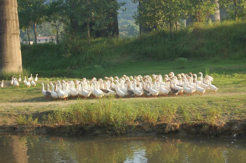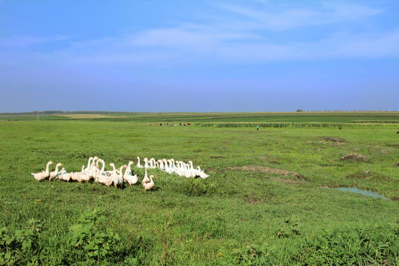 松花江拥有一个非常美丽的别名——“天河”。满族人民亲切地叫她 "松啊察里乌拉"。松花江流域一大特点是湖泊沼泽较多,其湖泊水系超过600个,是水禽养殖的“天堂”。松花江流域属温带季风性气候,全年四季分明,夏季最高温度30℃,持续时间不长,降雨量适中。冬季最低温度-30℃左右,寒冷而漫长,气候较为干燥,降雪量大。在这样的环境下,白鹅为了抵御寒冷,身上的羽毛就会长得特别厚实。松花江中下游的农民有家家户户养殖白鹅的传统。松花江白鹅以全身羽毛洁白、产绒量多、蓬松度高等特点而闻名,是目前中国国内白鹅绒品质最高的品种之一。