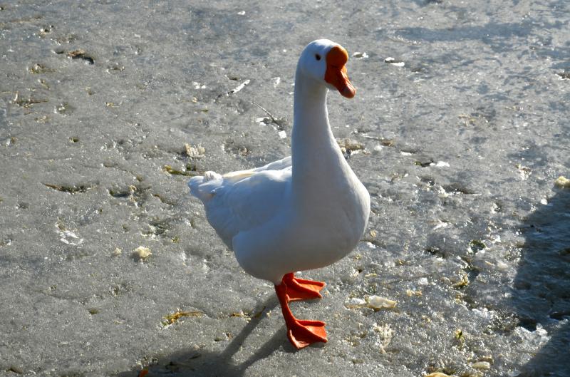 松花江白鹅以其全身羽毛洁白、产绒量多而闻名,松花江白鹅体型较小,略呈长圆形。羽毛洁白,颈细长,肉瘤较小,颌下偶有垂皮,即咽袋。喙、胫、蹼皆为橙黄色,虹彩为蓝灰色。腹部紧致不下垂。因其生长速度快,适应能力强,体型小,产蛋量高,抗寒能力强等优点而受到当地农户们的喜爱,并广泛饲养。为了更好地保护和改进松花江白鹅这一鹅种,黑龙江省畜牧研究所建有籽鹅保种场,黑龙江省农科院建有籽鹅繁育工程中心。