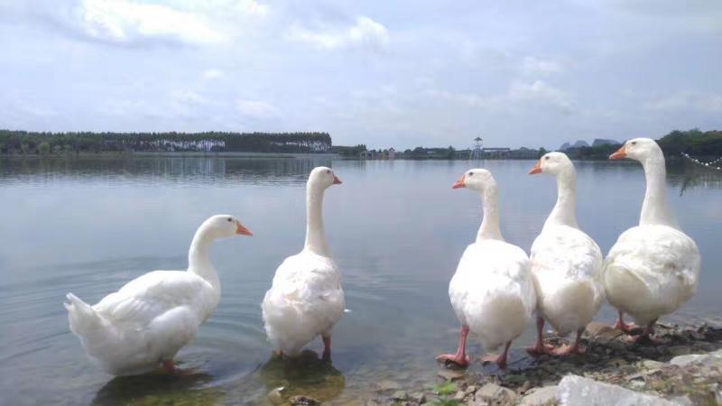 白色罗曼白鹅是欧洲古老品种,原产于意大利。经我国台湾地区引进和培育并成为其主要的肉鹅生产品种,饲养量占整个台湾的 93% 以上,因此也叫台湾大白鹅。近几年从台湾引进到大陆进行科学育种。白色罗曼鹅属于中型鹅种,全身羽毛洁白,眼为蓝色,喙、脚胫与趾均为橘红色。其体型明显的特点是圆得像一个球,颈短,背短、体躯短。成年公鹅平均体重7.5千克,母鹅平均体重6.5千克。白色罗曼鹅绒品质卓越,以色泽洁白,绒朵硕大和高蓬松度闻名天下。